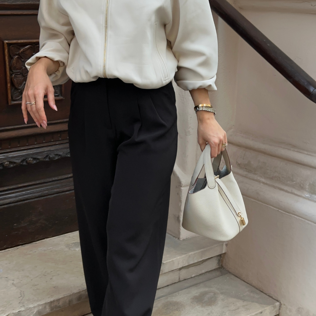 Available in the most classic colour palette, Beatrice is the perfect bucket bag for everyday style. Crafted from real leather comes with a detachable inner pouch and with polished solid hardware, it’s compact and unconventional, versatile, and designed to keep essentials close without compromising style.