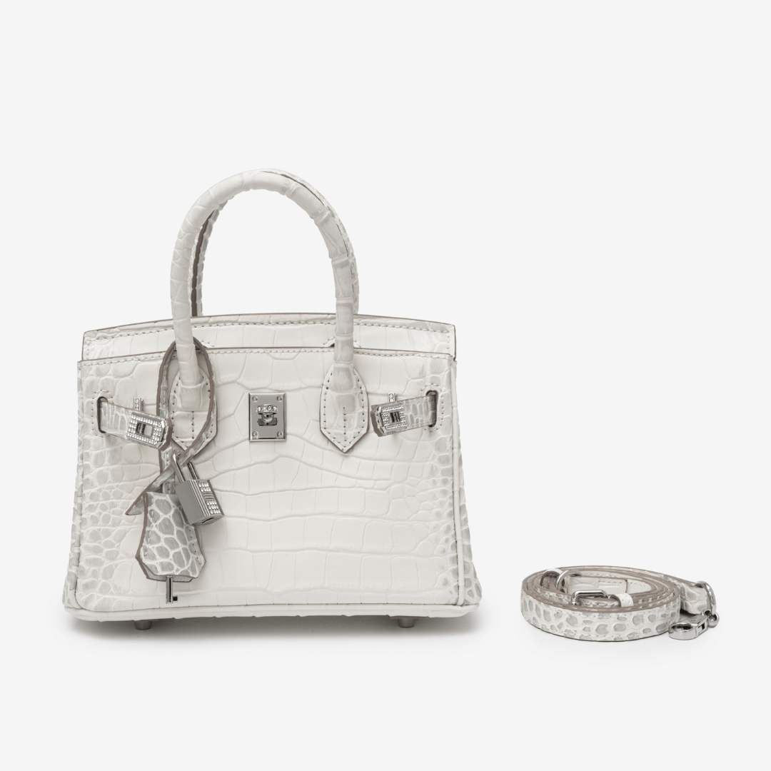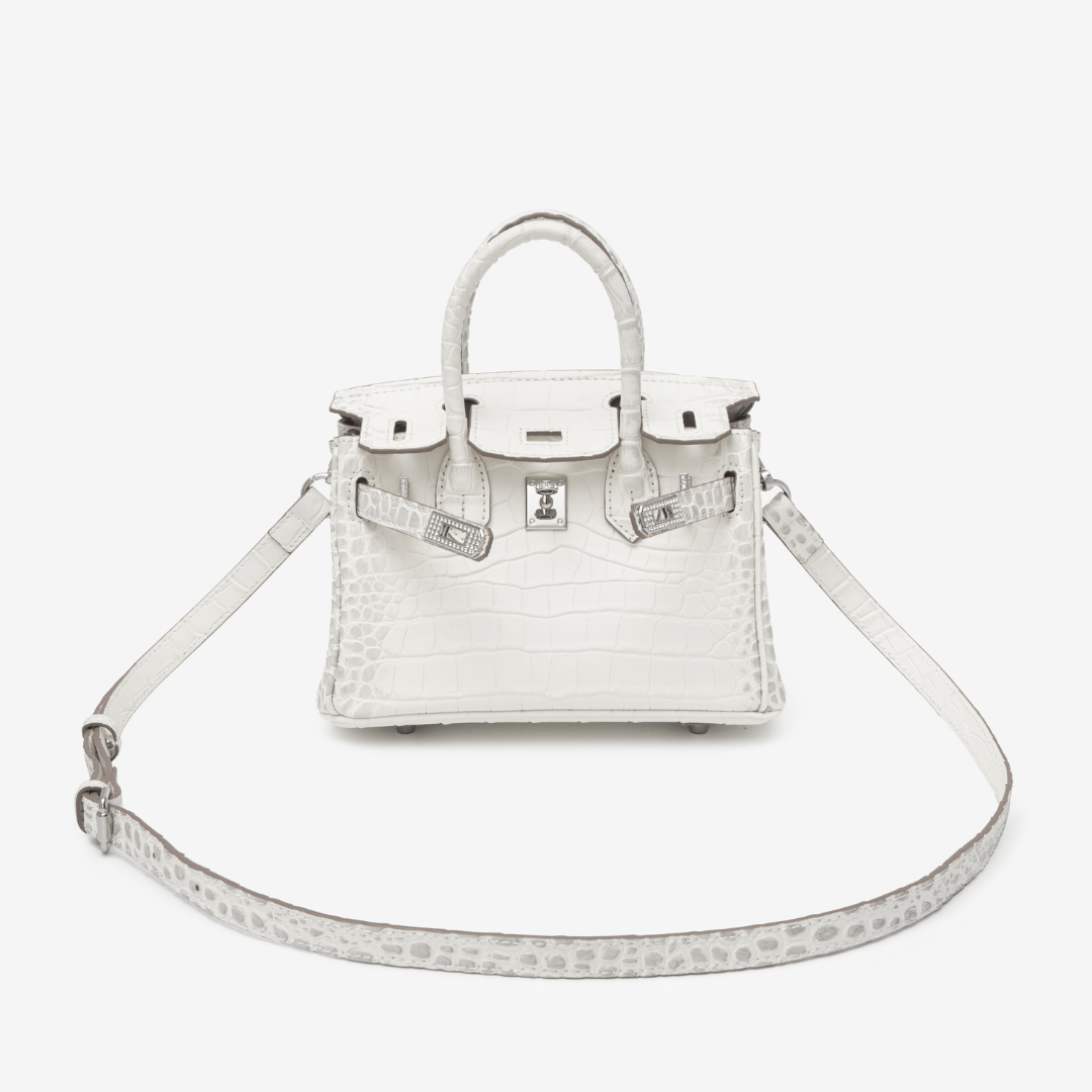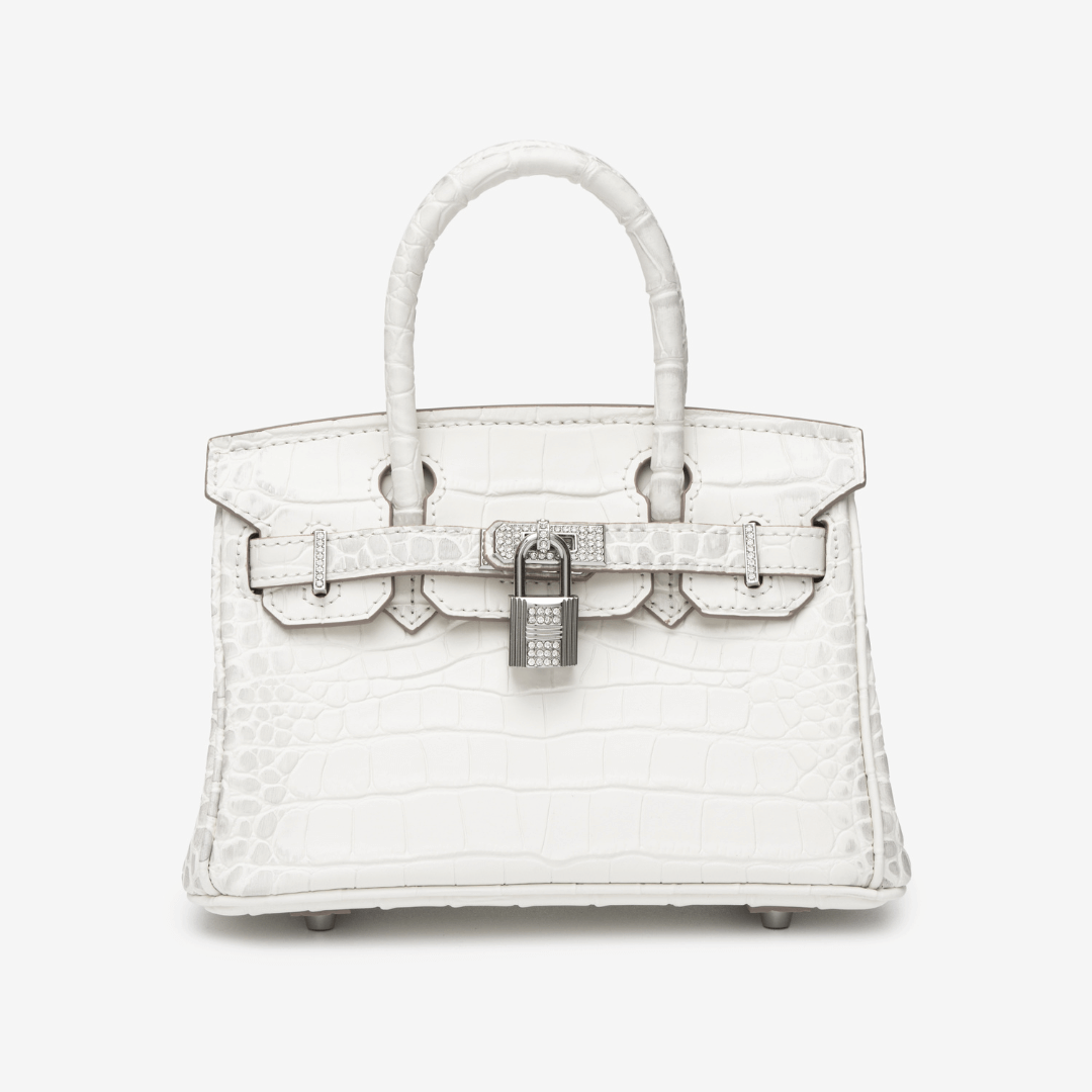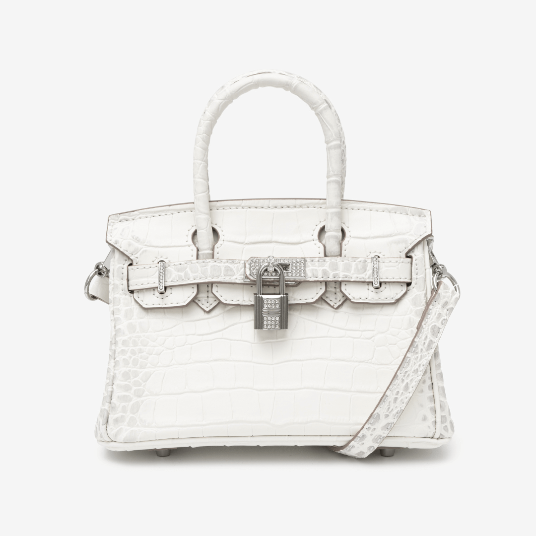 A bold twist on classic white, the Layla bag stuns in high-shine croc-embossed leather with silver-tone hardware. Sleek, structured, and ultra-glamorous, it fits your phone and tablet with ease — designed to make every entrance a statement.